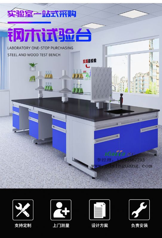 電話:13853666190山東鑫廣實驗設備科技有限公司——實驗臺鋼木中央實驗臺操作臺 實驗桌操作桌實驗室工作臺定做廠家